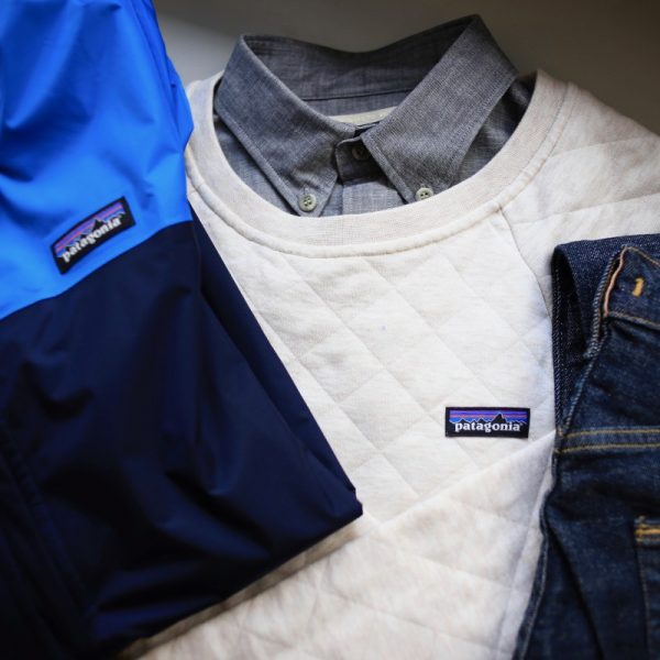 トップスにはPatagoniaのキルトクルー、deeperswearのハンズアップシャツの組み合わせ。