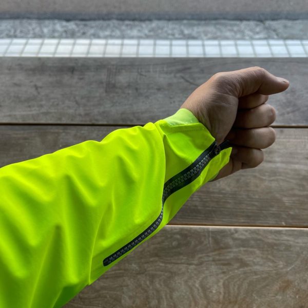 突然の天候の変化に対応できる最強のウィンドジャケットです。蛍光イエローを使ってる事で視認性が良く、周囲に存在をアピールすることで安全に家に帰ることができます。